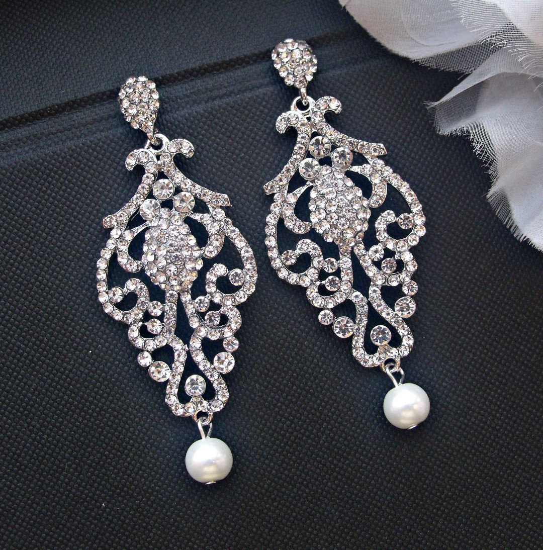 VANDUTI......................... BIJUTERII MIREASA - cercei mireasa cristale transparente si perle albe - pret 38 lei